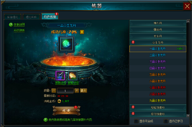入殓丹药炼制成功,可以在角色(快捷键C)界面,服用灵丹