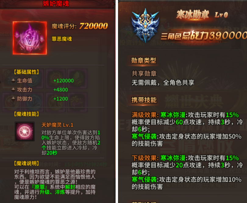 (2)寒冰勋章:可激活寒冰勋章,三角色总战力至少增加390000!
