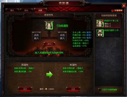 4.洗炼装备需要两件“比所洗炼装备少1条卓越属性”的装备作为材料