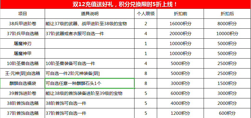 1)活动期间,充值1RMB可以获得1积分,活动结束后积分不保留