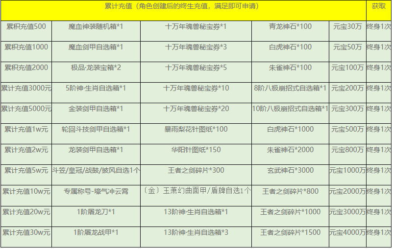 冠名活动规则:新服开服当日充值2000元或该区服角色累充20000元,