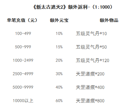 1、活动期间内单笔充值大于:500元的大侠都能额外获得50w元宝+攻击龙晶*1