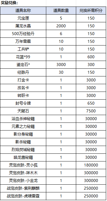 *积分可以累积最多七天,比如玩家连续10天获得积分100、100、100、100、100、100、100、100、100、100,可兑换积分就是700(而不是1000,只统计七天内)